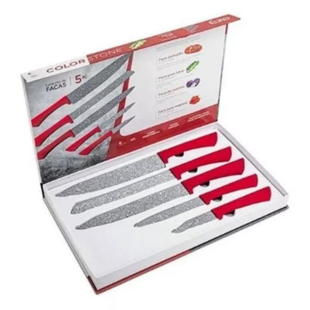 Jogo Faca Em Inox Colorstone Volcano 5PÇS Euro Home